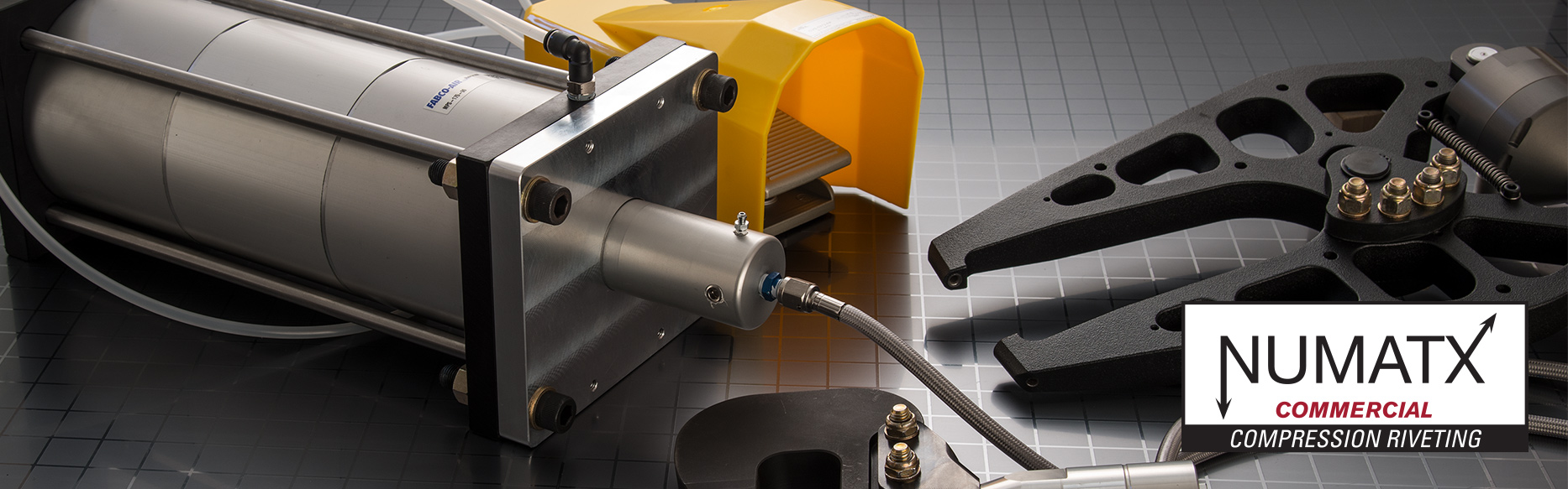 Numatx patented pneudraulic riveting system sets a new standard in aerospace and industrial compression riveting. Numatx riveters offer great ergonomic advantages in comparison to air only powered compression riveters. They are smaller, lighter, quieter and more versatile for ease of operator use.